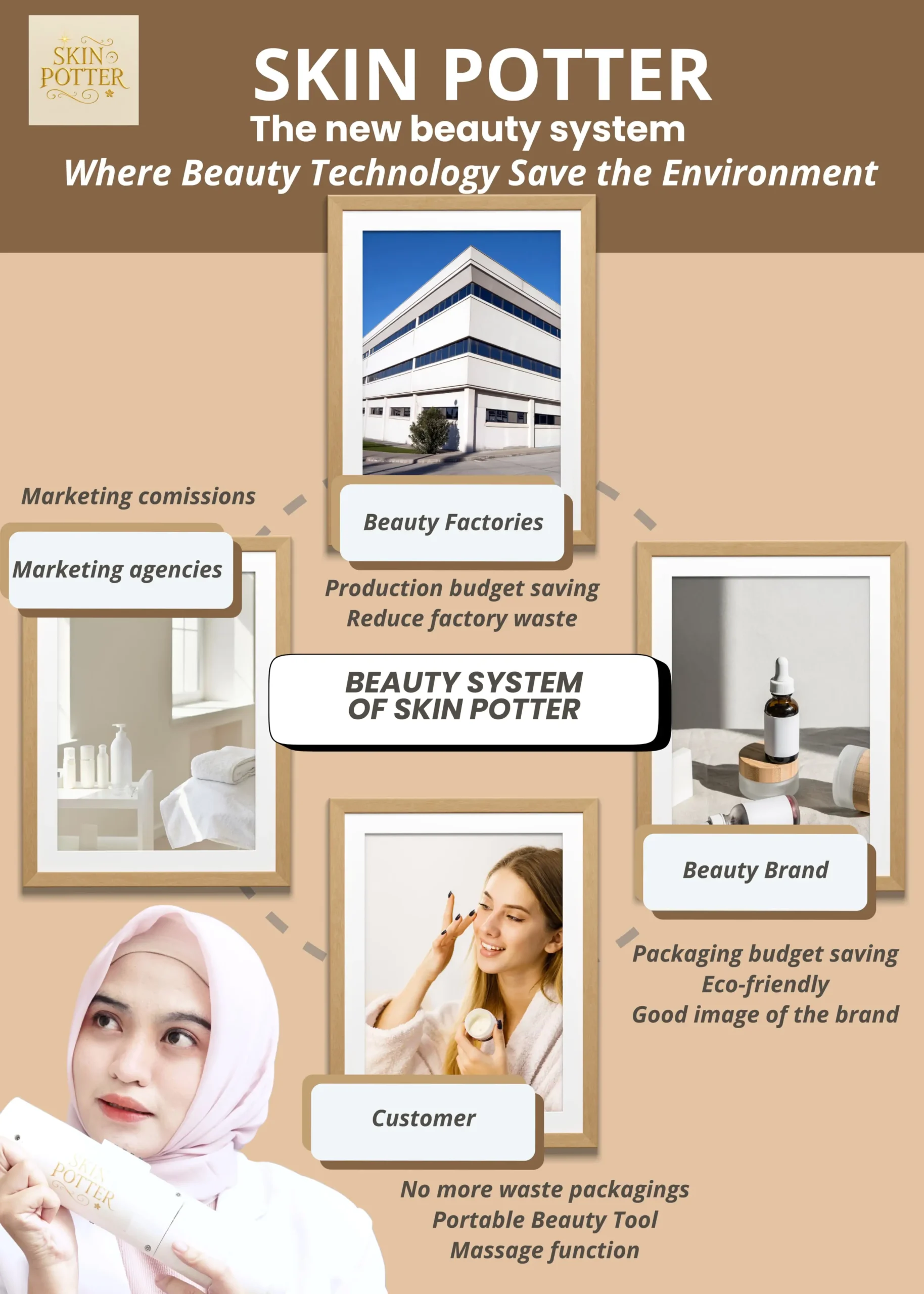 For this reason, the idea emerged to invent the SKIN POTTER (Skin Care Portable by One Tool To Environmental Rescue) tool, which is not only a beauty tool but it is solution to save the environment. Imagine by using Skin Potter you can save your Skin Care budget because it can be used for 10 years. You just need to refill your skincare.